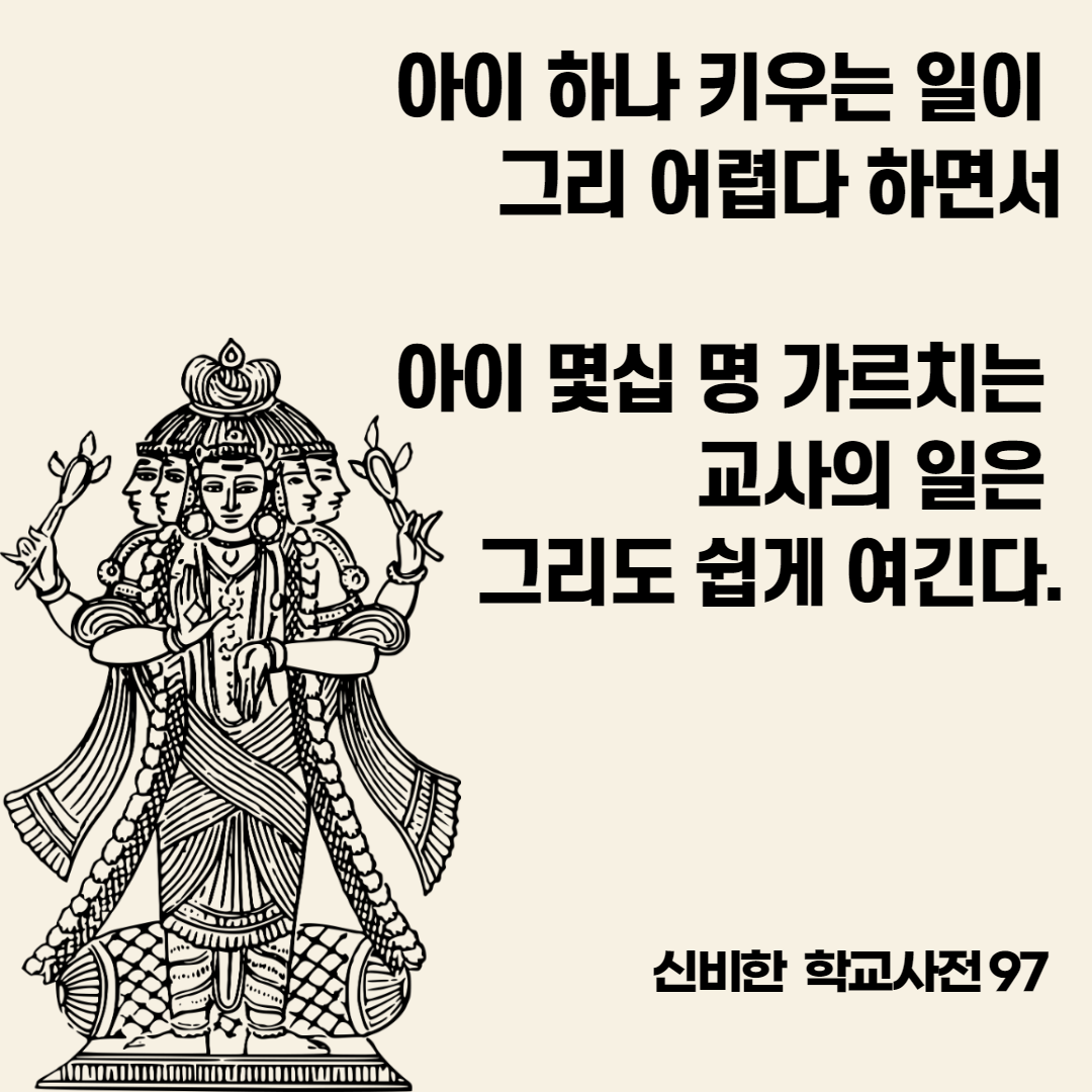 아이 몇십 명 가르치는 교사의 일은 그리도 쉽게 여긴다.