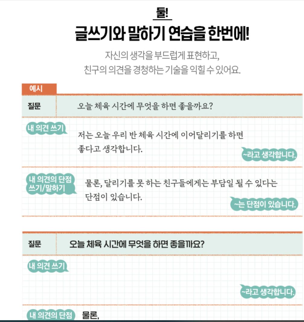 5. 말하기와 글쓰기 연습을 함께 할 수 있습니다. 친구들과 수다를 나누듯 즐겁게 시간을 보내면서 글쓰기의 재미를 느낄 수 있게 제작했습니다.