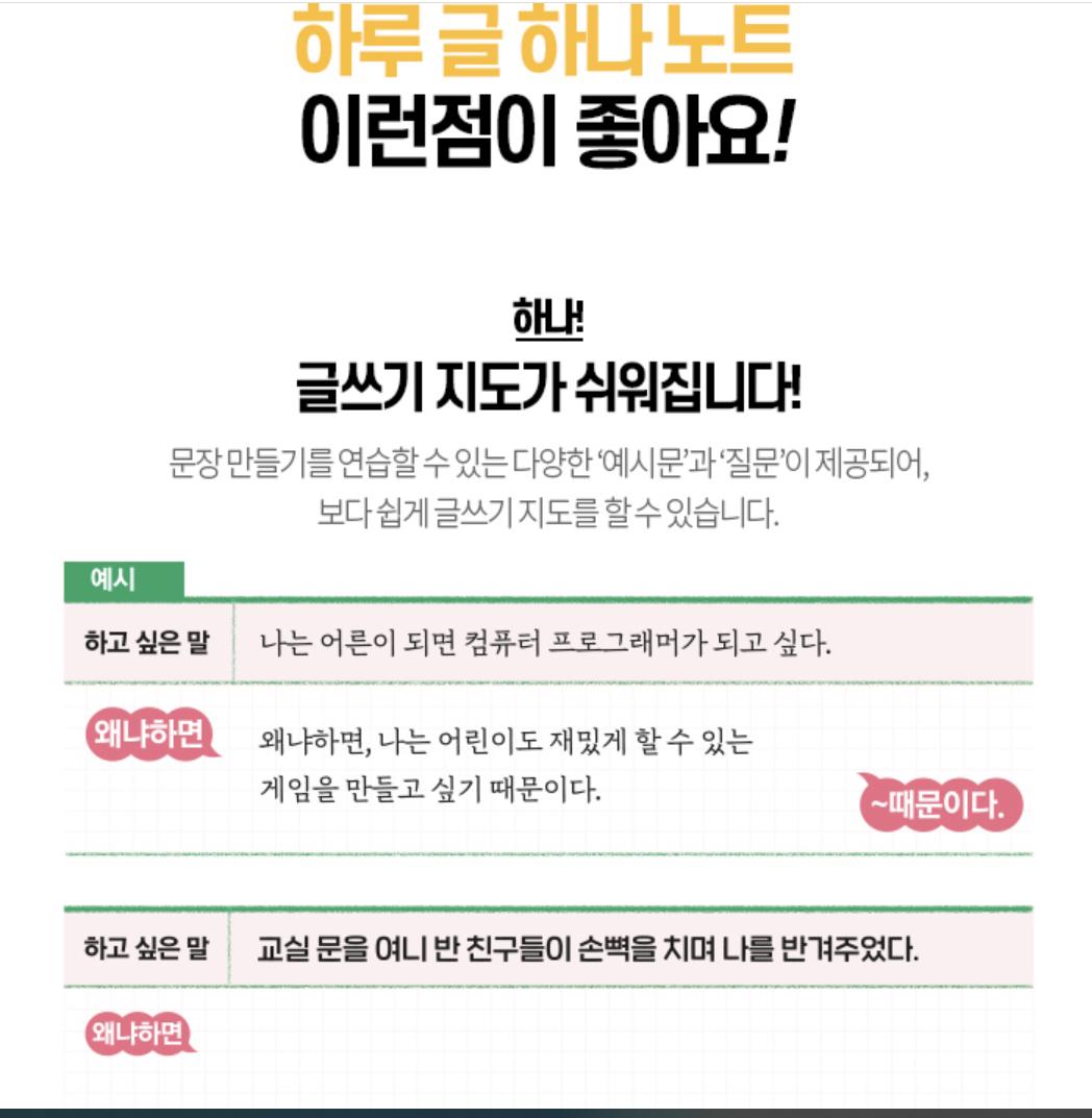 2. 아이들의 글쓰기 + 말하기 실력, 창의력, 인성, 의사소통 능력을 높여줄 수 있는 글쓰기 노트입니다.